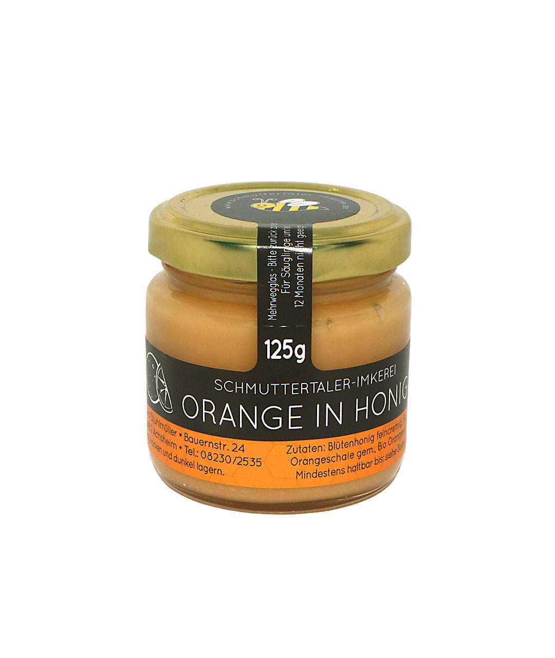 Zutaten: Blütenhonig feincremig, Bio-Orangenschale gemahlen, Bio-Orangenöl