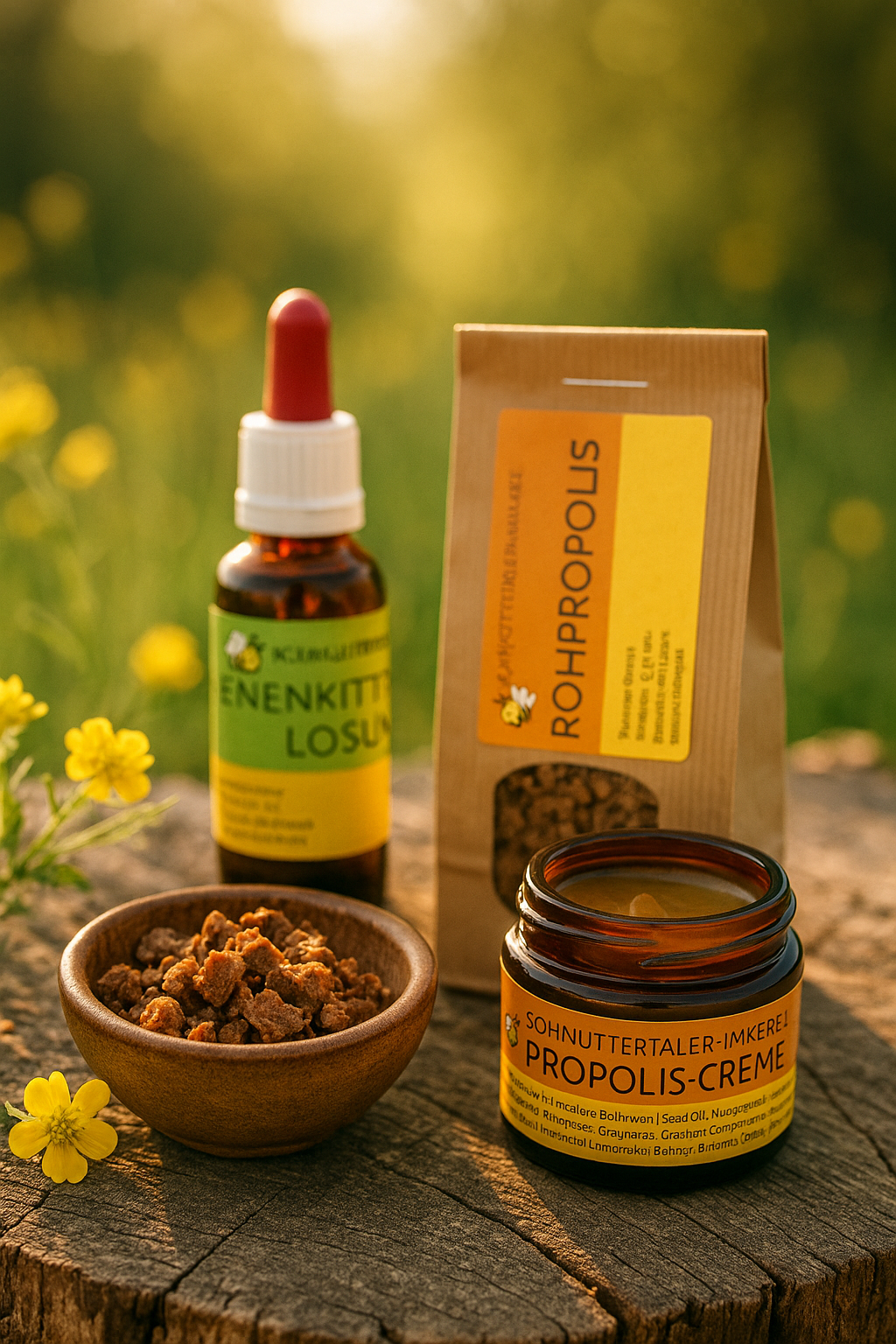 Propolis ist ein Naturprodukt und kann bei empfindlichen Personen allergische Reaktionen hervorrufen.