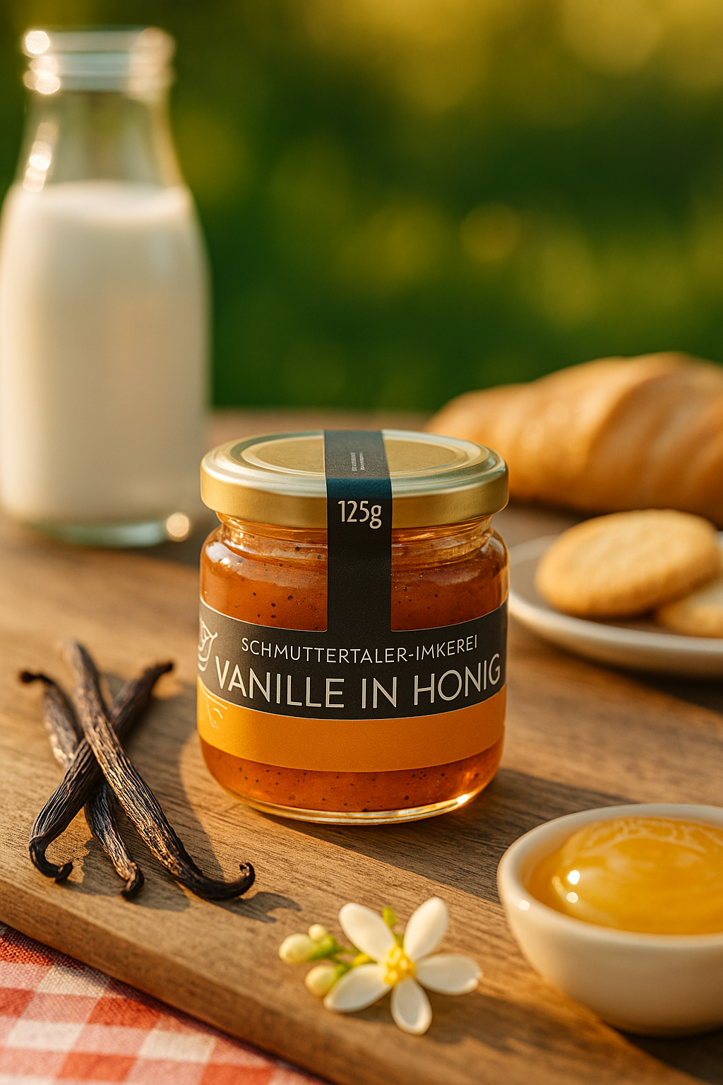 Ob klassisch auf dem Brot oder als raffinierte Zutat in der Küche – Vanille in Honig verleiht Speisen und Getränken eine sanfte, natürliche Süße mit einem Hauch von Luxus.